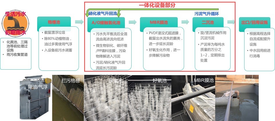 工藝技術:氣升回流一體化污水處理技術,使用A/O接觸氧化與MBR膜法工藝